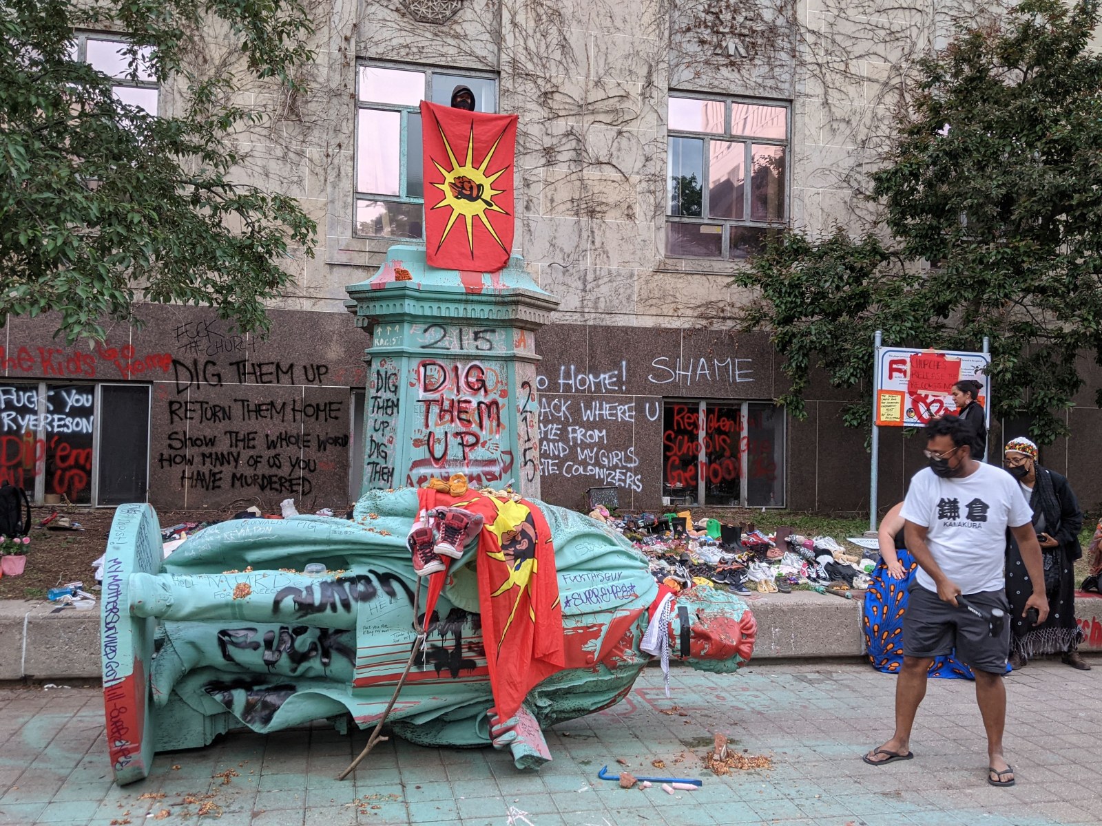 Egerton Ryerson Statue Toppled At Protest Over Mass Grave Of 215 Indigenous Children
